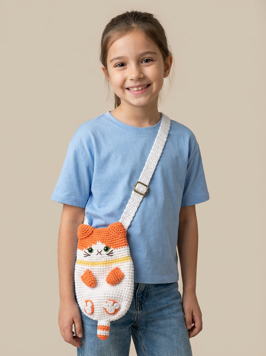 Say hello to the Mittens the Cat Crossbody Bag — a playful handmade crochet bag designed for kids who love to carry their little treasures in the cutest way possible. Shaped like an adorable cat with whiskers, paws, and a striped tail, this bag turns any outfit into a fun statement and makes everyday outings feel like an adventure.